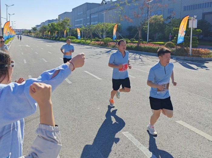 长跑鏖战,毅力与智慧并重:在5000米赛道上,金能健儿展现了不同的取胜之道。刘奇坚韧拼搏,凭借顽强毅力紧咬前方对手,最终锁定男子组铜牌。袁春丽从第二圈开始连续超越对手,以出色的后程发力和远超日常训练的成绩同样摘得女子组铜牌。尤为可贵的是,当袁春丽进入最后一圈赛程时,刚刚结束比赛的刘奇已在最后500米处等候,一路陪跑鼓劲,沿途的金能啦啦队也声浪相接,用不绝的加油声为他们注入力量。两枚奖牌,共同见证了金能健儿在耐力赛场上的坚韧与智慧。而比奖牌更闪耀的,是赛道内外协同协作、凝心聚力的团队精神,那才是金能战队最坚实的底气与最深沉的力量。